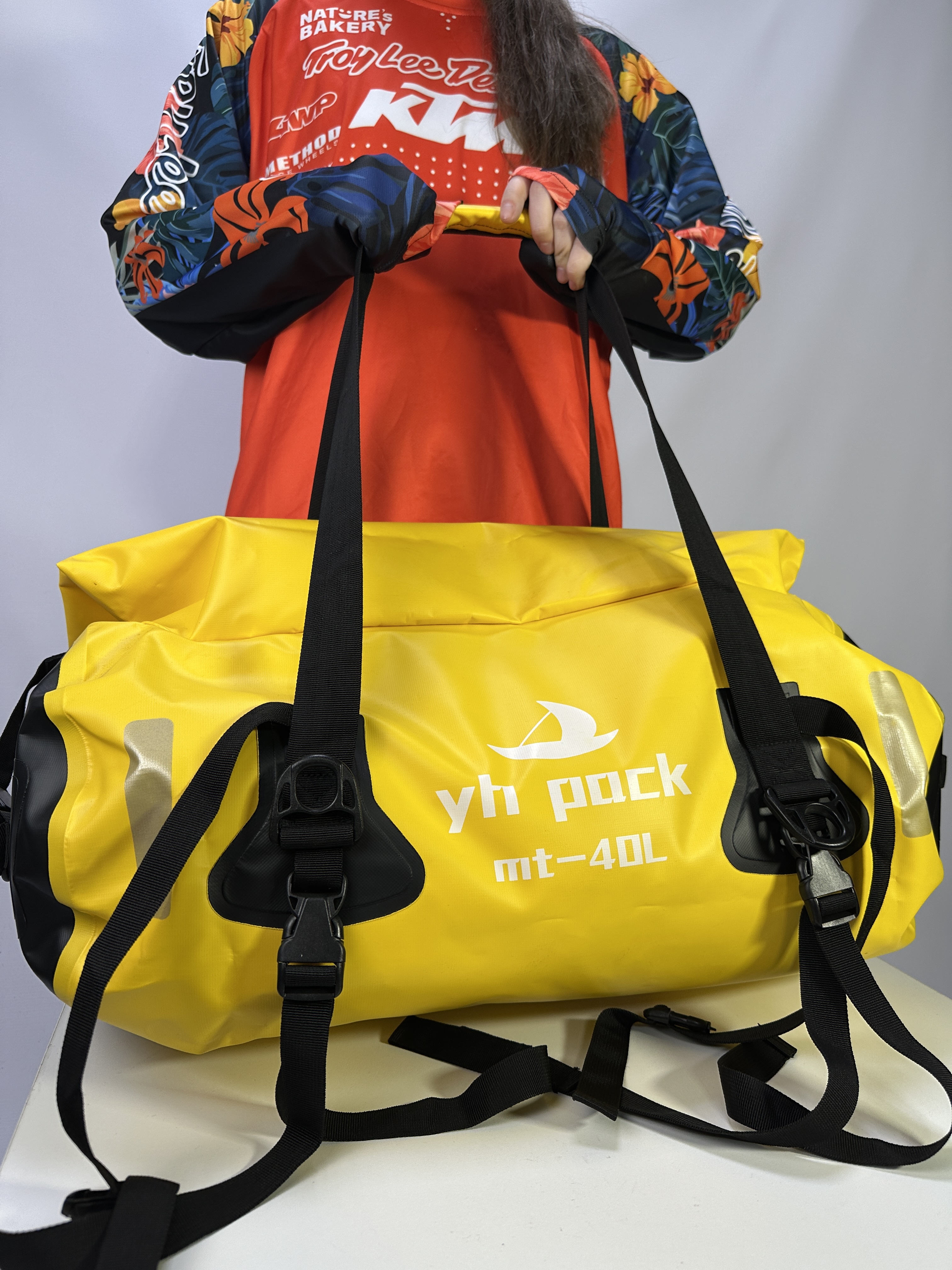 Водонепроницаемая сумка YH Pack объемом 40 литров обеспечивает полную защиту вещей от воды, грязи и пыли. Изготовлена из прочного ПВХ-материала с герметичными сварными швами. Удобная система креплений с надежными карабинами позволяет легко фиксировать сумку на мотоцикле, лодке или велосипеде. Сохраняет плавучесть при полной загрузке. Идеальна для мототуризма, рыбалки, пляжного отдыха и экстремальных путешествий.
